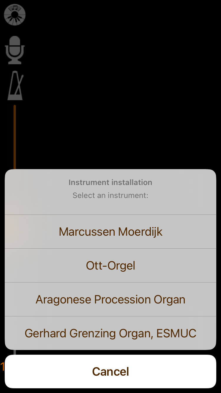 At the first usage of the app, or if there are no instruments installed, you see this image: